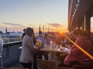 Ein Highlight war unser gemeinsamer Abend auf der Dachterrasse mit Blick auf die Hafencity – Sonnenuntergang, Gespräche, gute Stimmung.